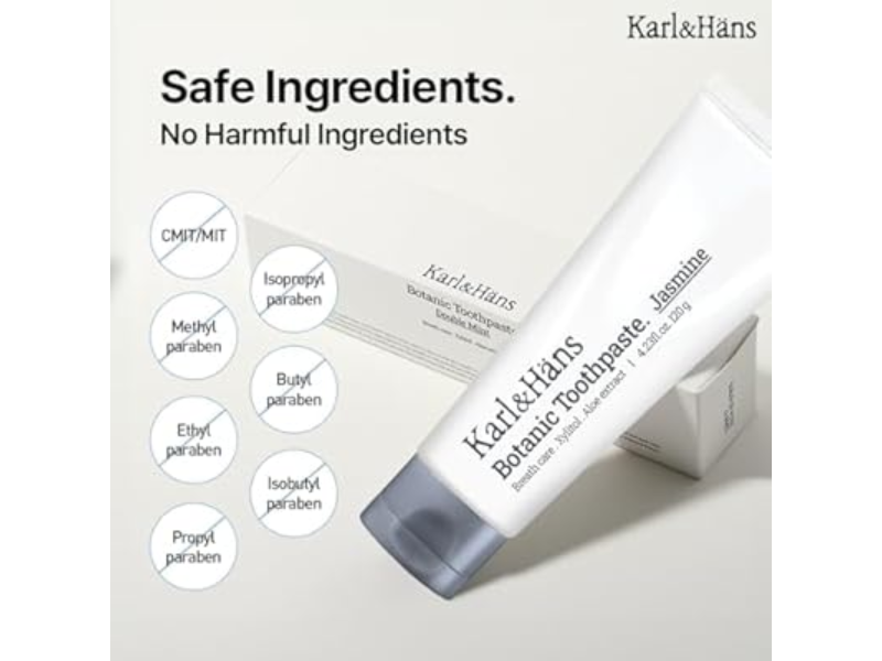 Không chứa SLS, paraben, hay chất tạo màu nhân tạo, kem đánh răng thực vật Karl&Hans là lựa chọn an toàn cho cả người lớn và trẻ em. Sản phẩm cũng cam kết không thử nghiệm trên động vật và sử dụng bao bì có thể tái chế, phù hợp với lối sống xanh.